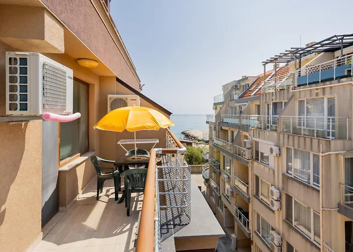 Die am Strand 55 m² große Ferienwohnung Marea 2 Pomorie liegt in einer 14 Gehminuten Entfernung vom Salzmuseum und bietet WLAN für Geschäftsreisende und Urlauber. Южен Плаж ist in einer Entfernung von 3 km von den Apartments, während die Bushaltestelle Ruski Pametnik gleich neben der Unterkunft ist.